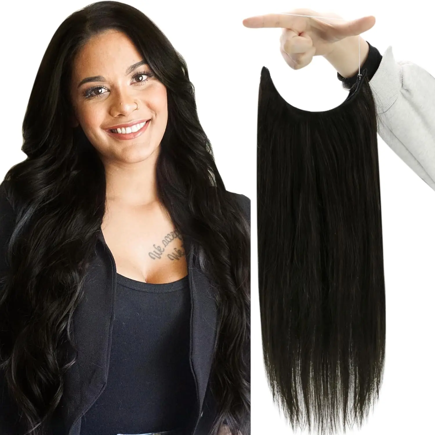 Transform your hair in seconds with our Invisible Wire Human Hair Extension, made from 100% Remy human hair for a silky, natural finish. This fishing-wire (halo) hair extension is designed for quick, damage-free styling — simply place the transparent wire over your head, blend your natural hair over it, and enjoy instant volume and length.