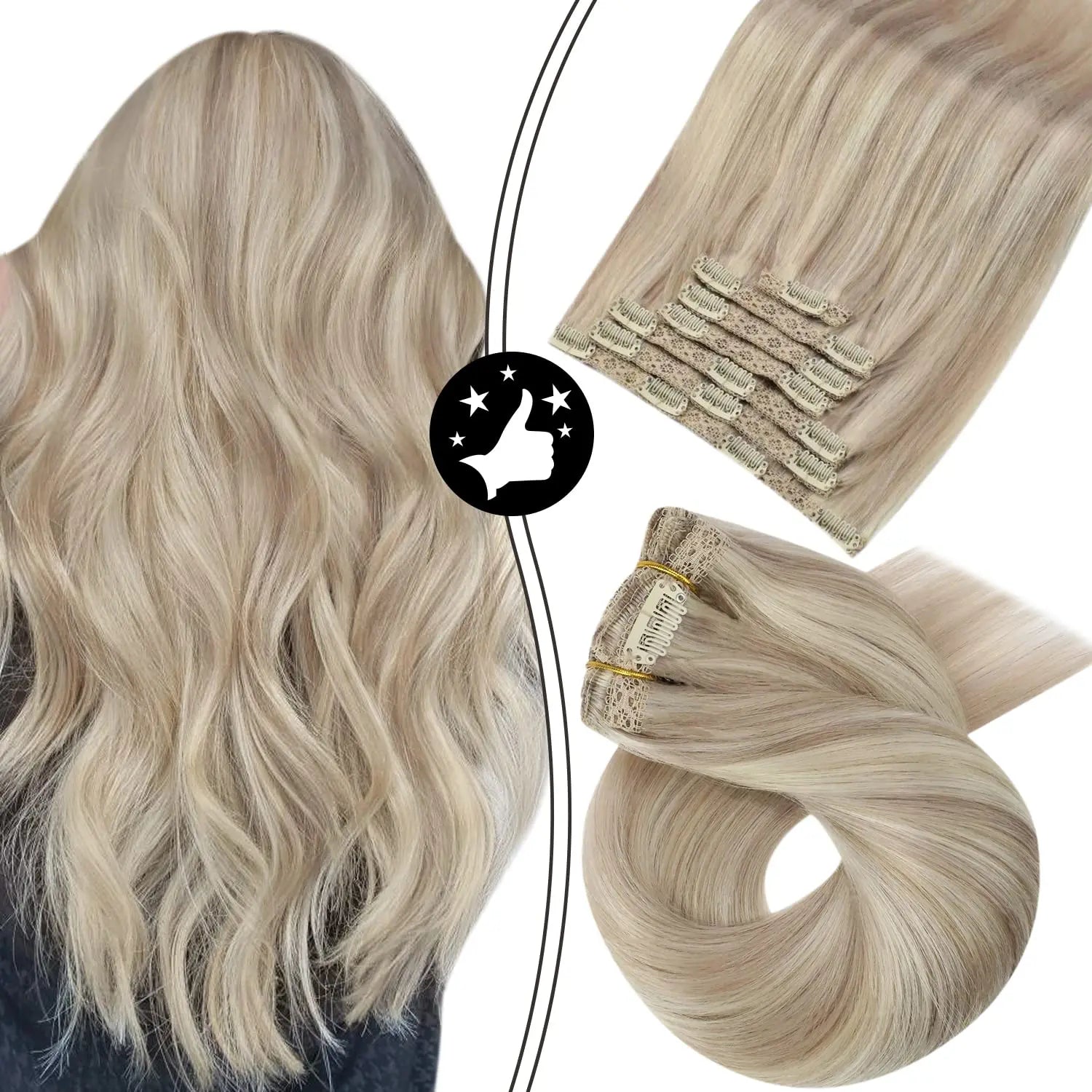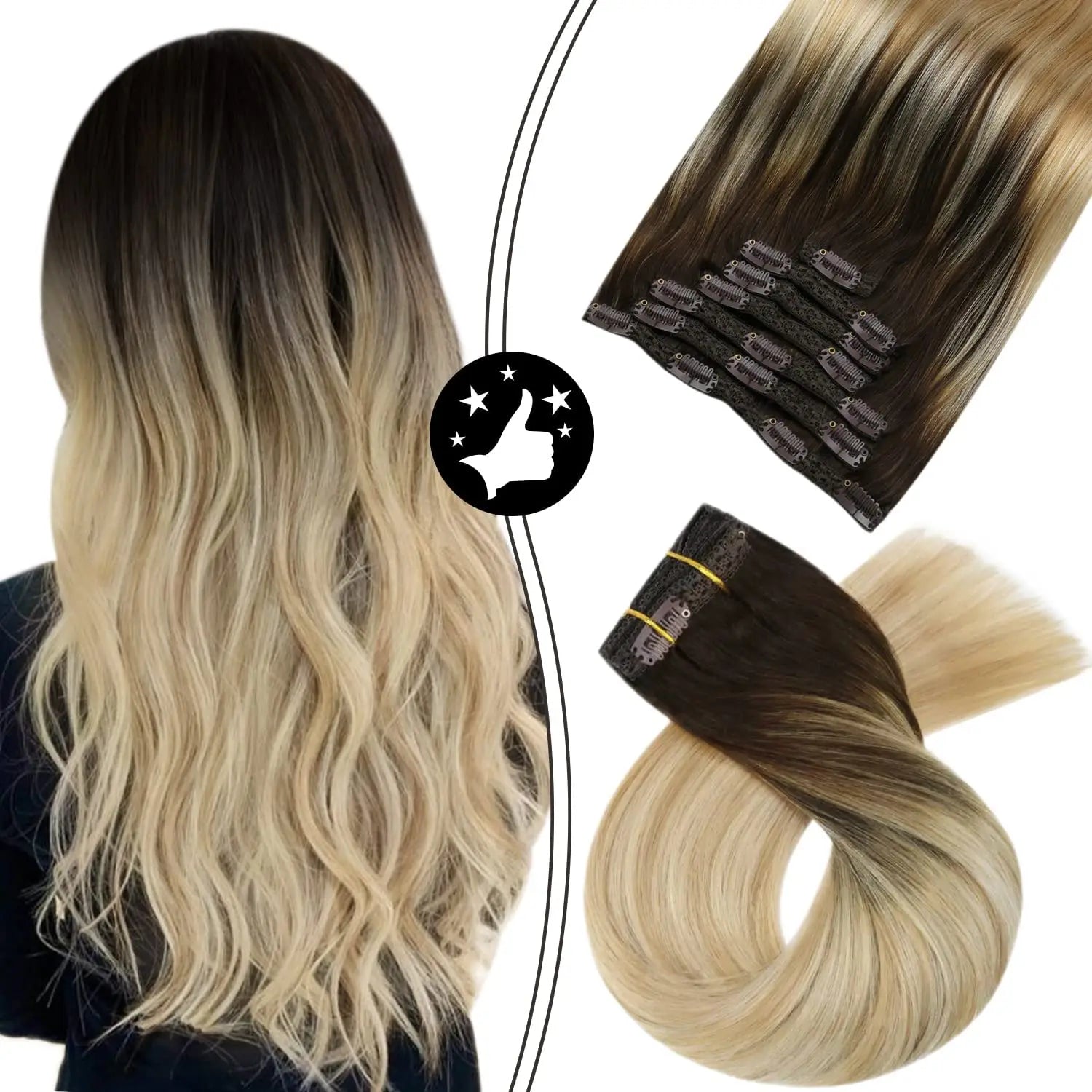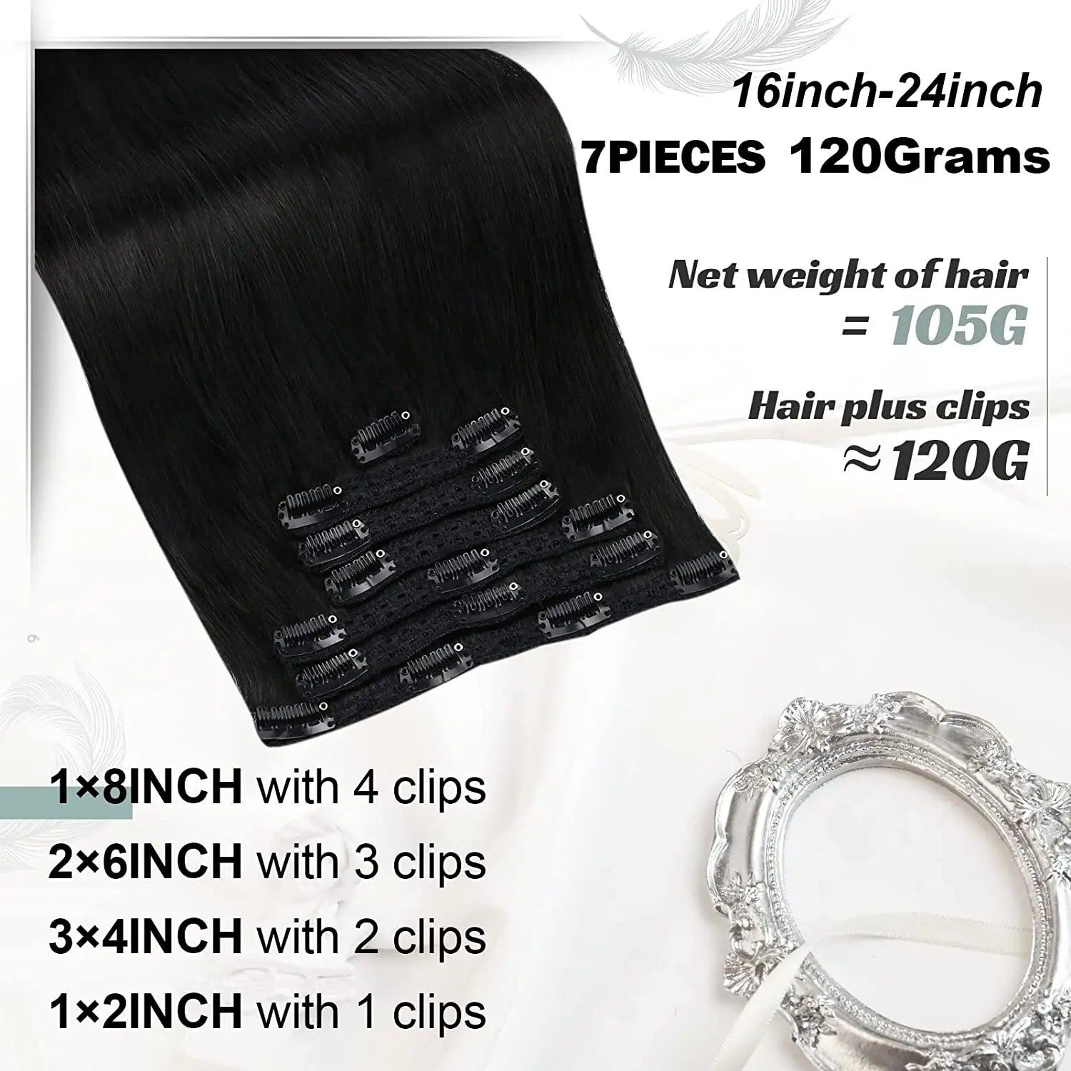7-Piece Clip-In Human Hair Extensions – 16–24” Straight Remy Hair (105g)